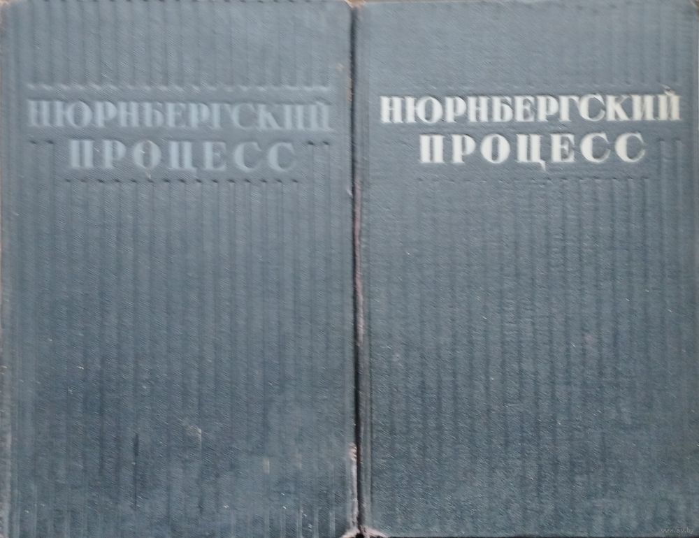 Большой энциклопедический формат. 906+630 стр. Настоящий Сборник содержит наиболее важные официальные материалы о Нюрнбергском судебном процессе по делу главных немецких военных преступников. Как известно, Международный Военный Трибунал, созданный на паритетных началах на основе соглашения от 8 августа 1945 г. между правительствами СССР, Соединенных Штатов Америки, Великобритании и Франции, к которому затем присоединились еще 19 государств, рассматривал с 20 ноября 1945 г. по 1 октября 1946 г. в г. Нюрнберге (Германия) дело главных немецких военных преступников, преданных суду за подготовку, развязывание и ведение агрессивных войн, за военные преступления и преступления против человечности. Суду были преданы 24 военных преступника, входившие в правящую клику гитлеровской Германии, а именно: Геринг, Гесс, Риббентроп, Лей, Кейтель, Кальтенбруннер, Розенберг, Франк, Фрик, Штрейхер, Функ, Шахт, Густав Крупп, Дениц, Редер, Ширах, Заукель, Иодль, Папен, Зейсс-Инкварт, Шпеер, Нейрат, Фриче и Борман. Трое из них фактически не находились на скамье подсудимых. Еще до начала процесса Лей в тюрьме покончил жизнь самоубийством; Густав Крупп был признан неизлечимо больным, в связи с чем дело о нем было Трибуналом приостановлено; Борман не был разыскан, и дело о нем рассматривалось Трибуналом заочно.