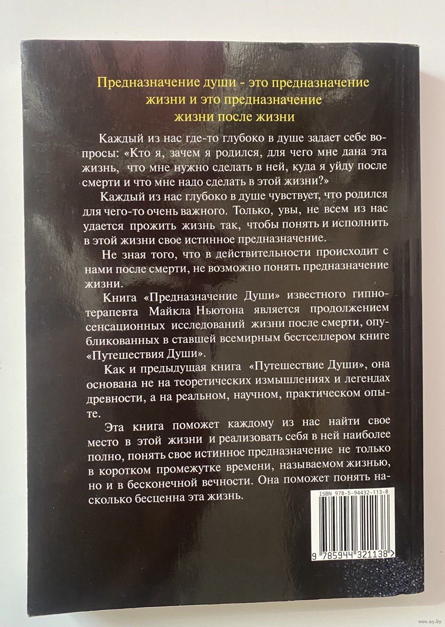 Каждый из нас где-то глубоко в сердце задает себе вопросы: «Кто я, зачем я родился, для чего мне дана эта жизнь, что мне нужно сделать в ней, куда я уйду после смерти?» Каждый из нас глубоко в душе чувствует, что родился для чего-то очень важного. Только, увы, не всем из нас удается прожить жизнь так, чтобы понять и исполнить в этой жизни свое истинное предназначение. Книга «Предназначение Души» известного гипнотерапевта Майкла Ньютона является продолжением сенсационных исследований жизни после смерти, опубликованных в ставшей всемирным бестселлером книге «Путешествия Души». Книга «Предназначение Души», как и предыдущая книга, основана не на теоретических измышлениях и легендах древности, а на реальном, научном, практическом опыте. Эта книга поможет каждому из нас найти свое место в этой жизни и использовать ее с максимальной пользой для души, понять свое истинное предназначение не только в коротком промежутке времени, называемом жизнью, а в бесконечной вечности.