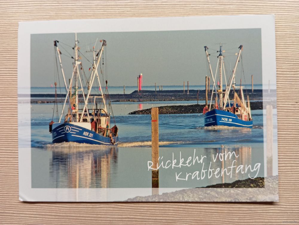 О-10. ПОДПИСАННАЯ ОТКРЫТКА. ГЕРМАНИЯ. РЫБОЛОВНЫЕ БАРКАСЫ.