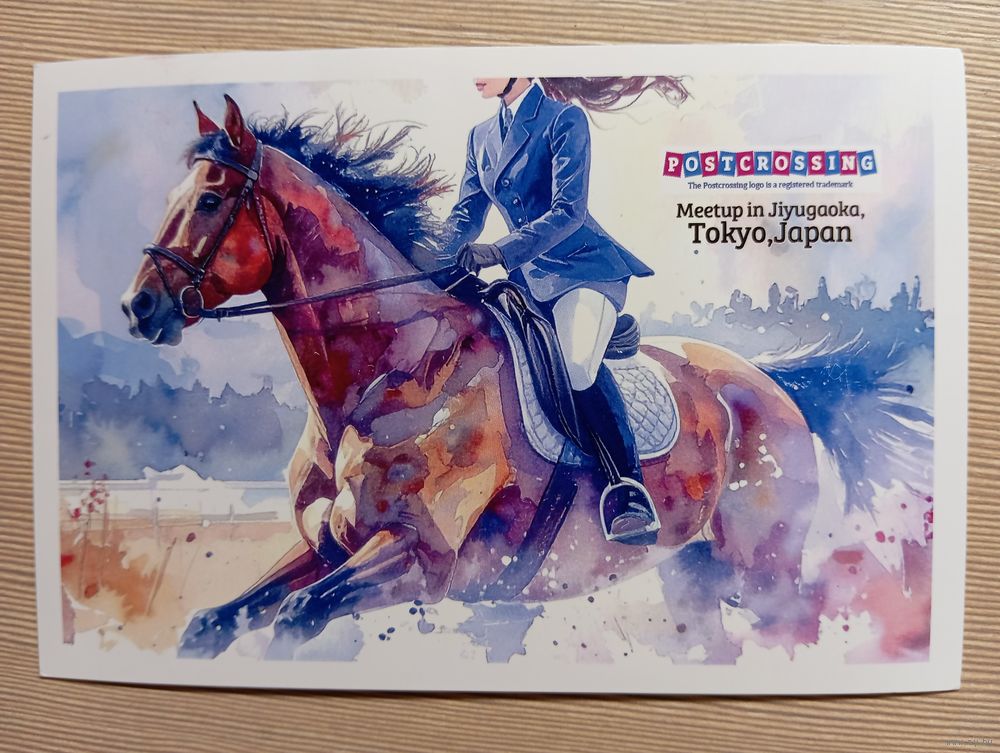 О-11. ПОДПИСАННАЯ ОТКРЫТКА. ЯПОНИЯ. ВСТРЕЧА ПОСТЕРОВ. ВСАДНИЦА.