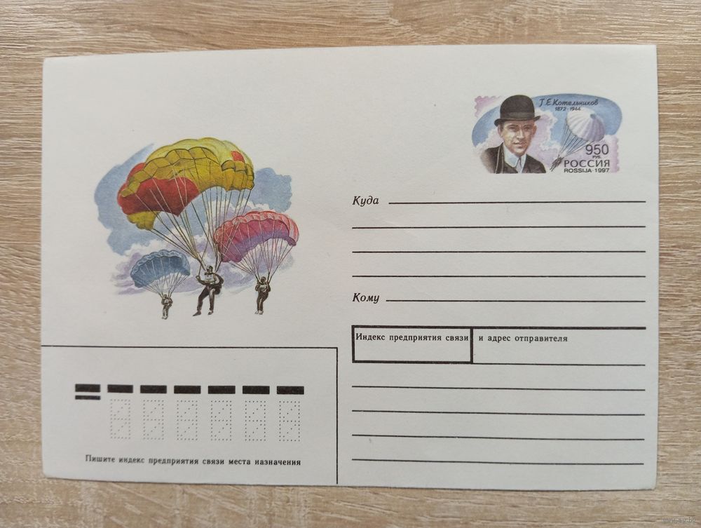 О-12. ЧИСТЫЙ КОНВЕРТ с ОРИГИНАЛЬНОЙ МАРКОЙ. Т.Е. КОТЕЛЬНИКОВ. ПАРАШЮТ. Худ. Р. СТРЕЛЬНИКОВ.
