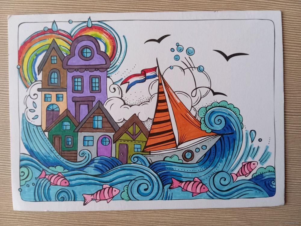 О-12. ПОДПИСАННАЯ ОТКРЫТКА. НИДЕРЛАНДЫ. ОТКРЫТКА РАСКРАСКА. КОРАБЛИК.