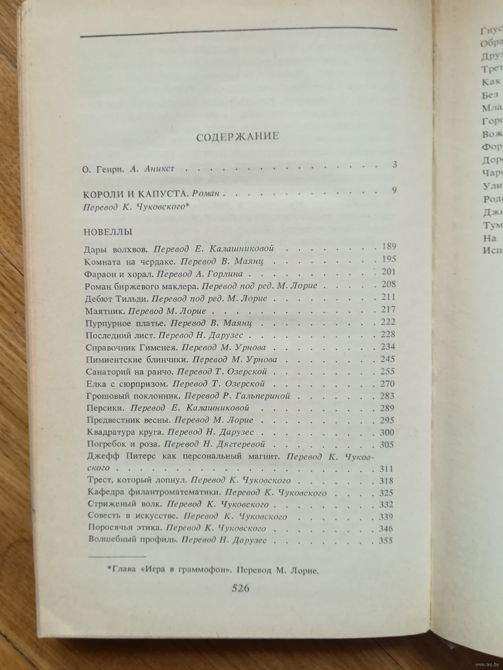 В сборник американского писателя-новеллиста О.Генри вошли роман КОРОЛИ И КАПУСТА - самое значительное произведение автора, в котором он развенчивает воспетую буржуазной литературой колониальную экзотику и сатирически рисует захватническую политику американских монополистов в Латинской Америке, а также избранные новеллы.