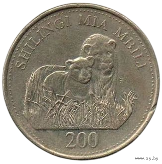 Объединённая Республика Танзания. Занзибар. 200 шиллинги (шиллингов) 2014. Фауна. Лев и львица.