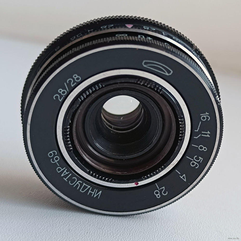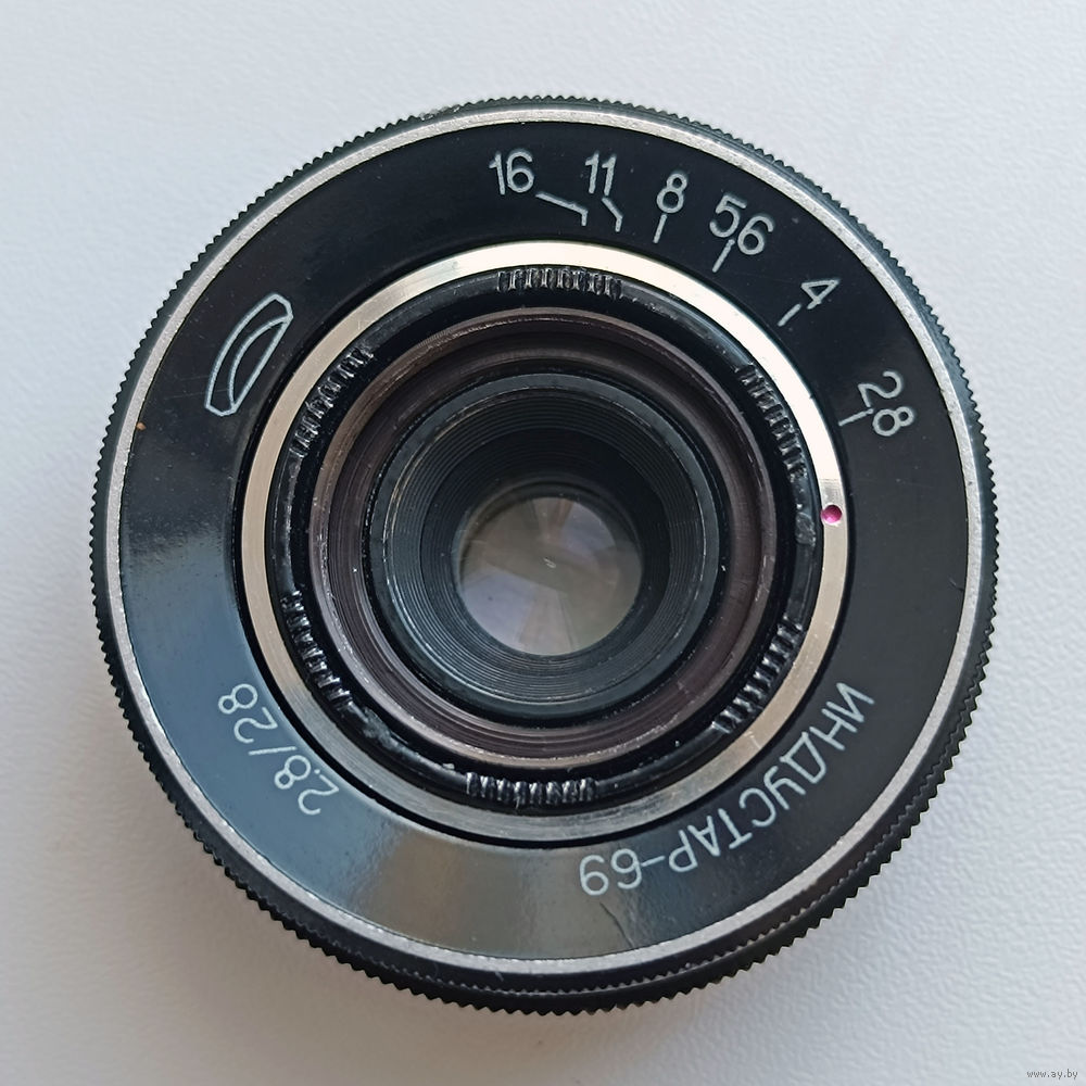 Объектив Индустар-69 2,8/28 - светосильный, широкоугольный объектив с постоянным фокусным расстоянием для полукадрового аппарата Чайка.