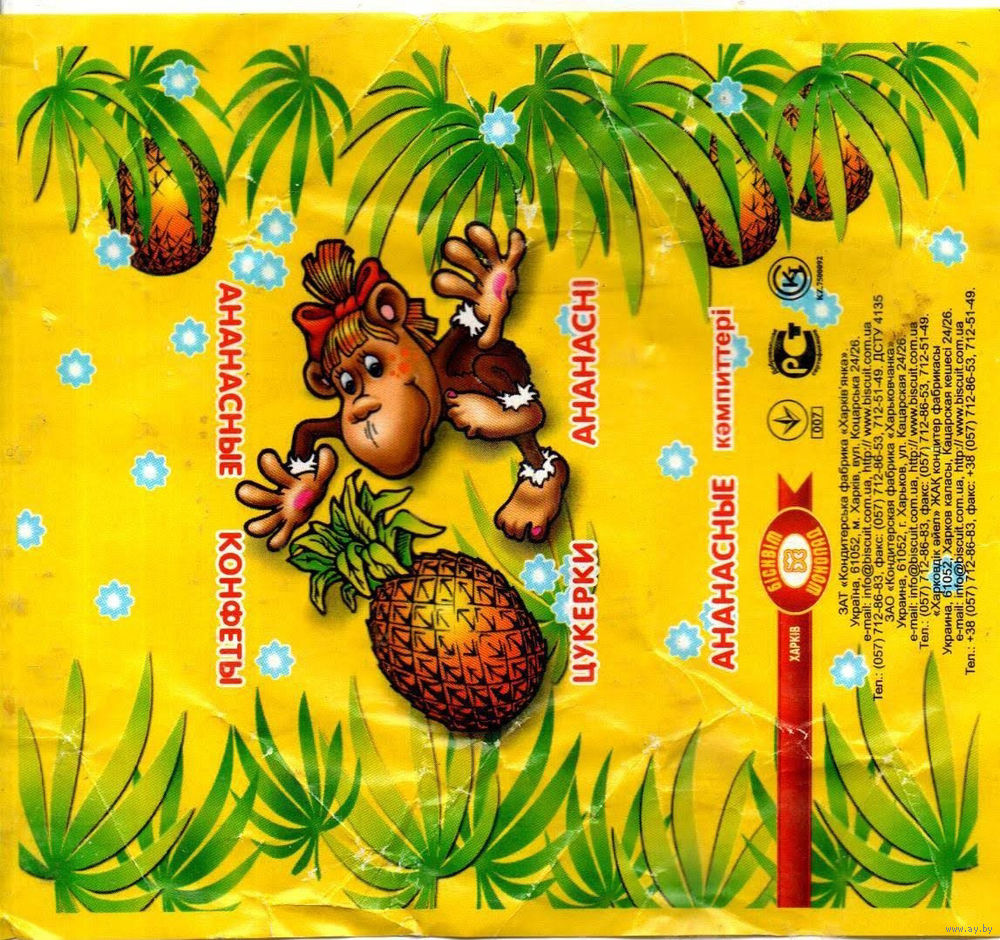 Обертка от конфеты "Ананасные" (Харьков)