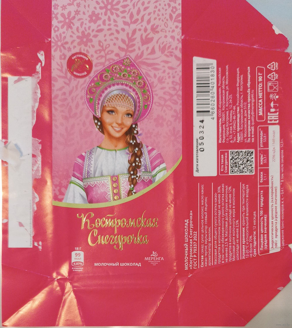 Обертка от шоколада "Костромская снегурочка" (к/ф "Меренга")