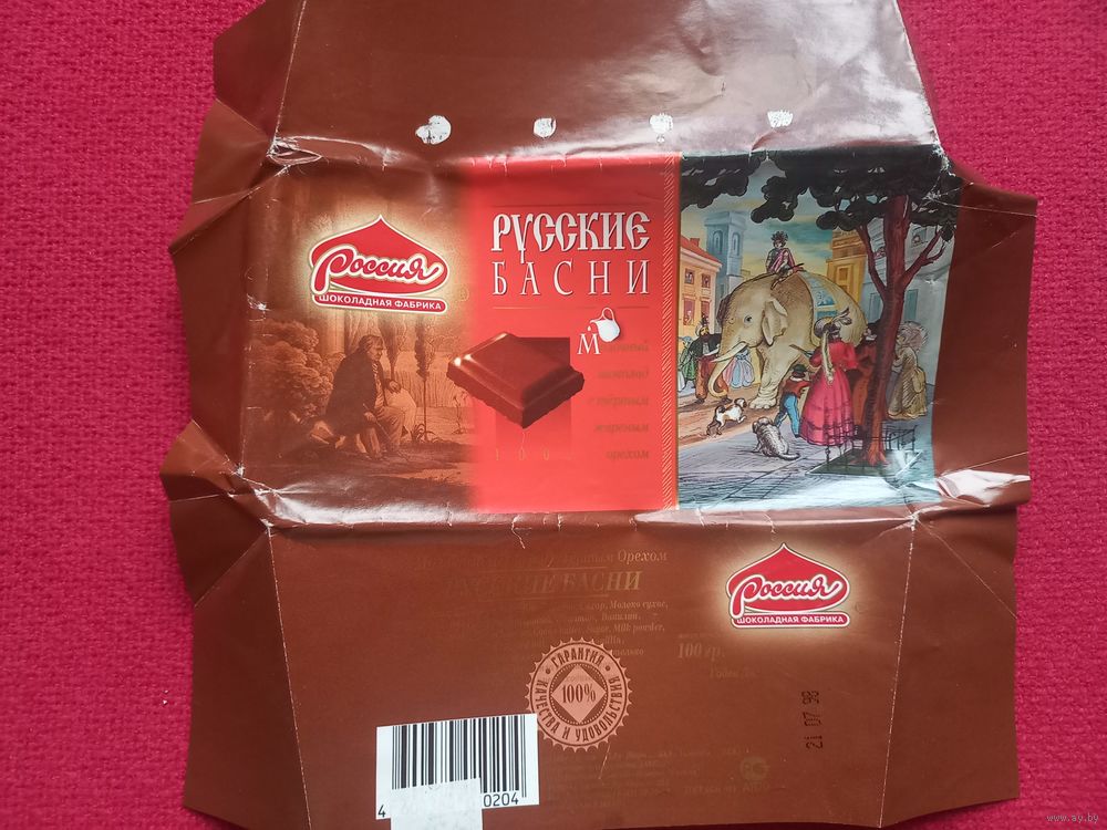 Обертка от шоколада Русские Басни Россия Шоколадная фабрика