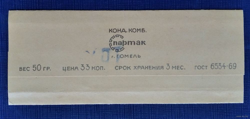 Обертка. Шоколад. Шоколадный батон. Спартак. Гомель. СССР.
