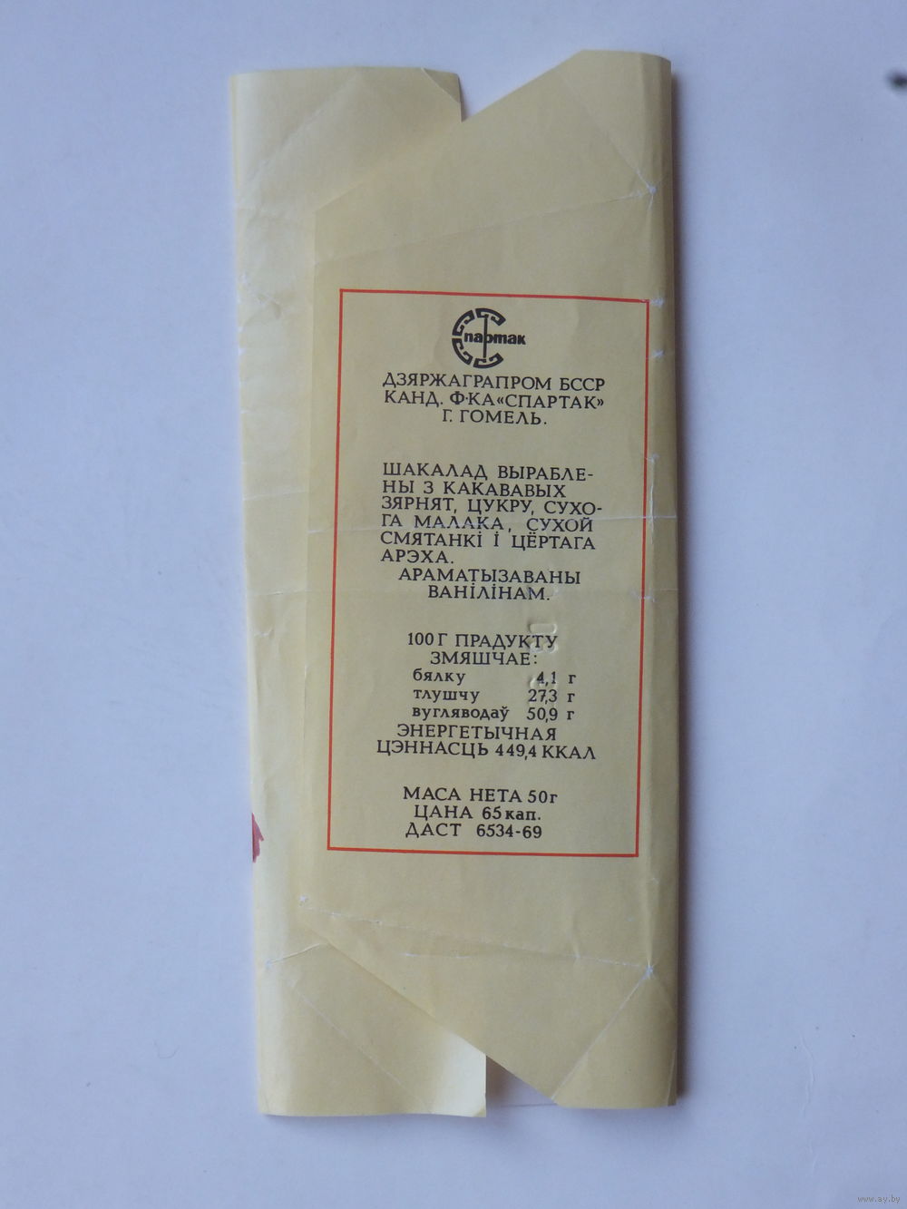 Обертка шоколад Вяселыя рабяты Спартак ГОСТ 1969