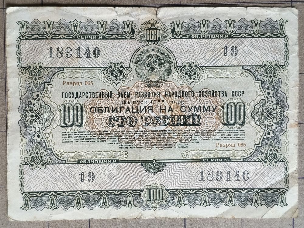 Облигация 100 рублей 1955 г., СССР