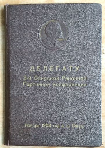 Обложка от рабочего блокнота делегата районной партконференции. г.Свирь.1958 г.