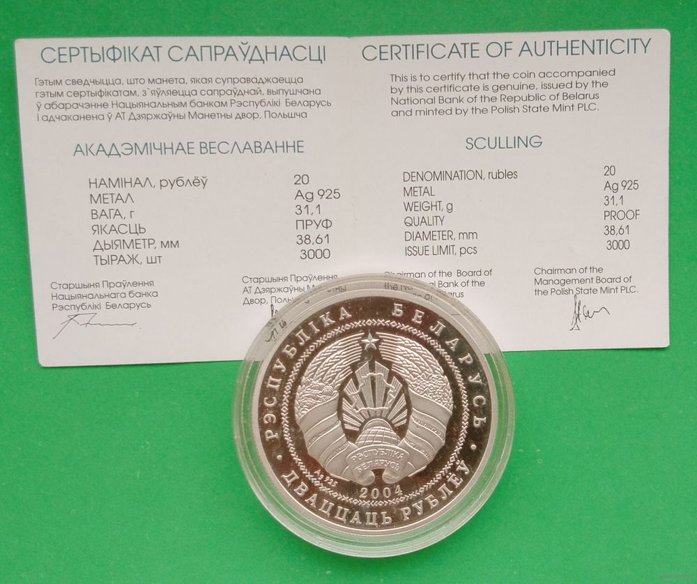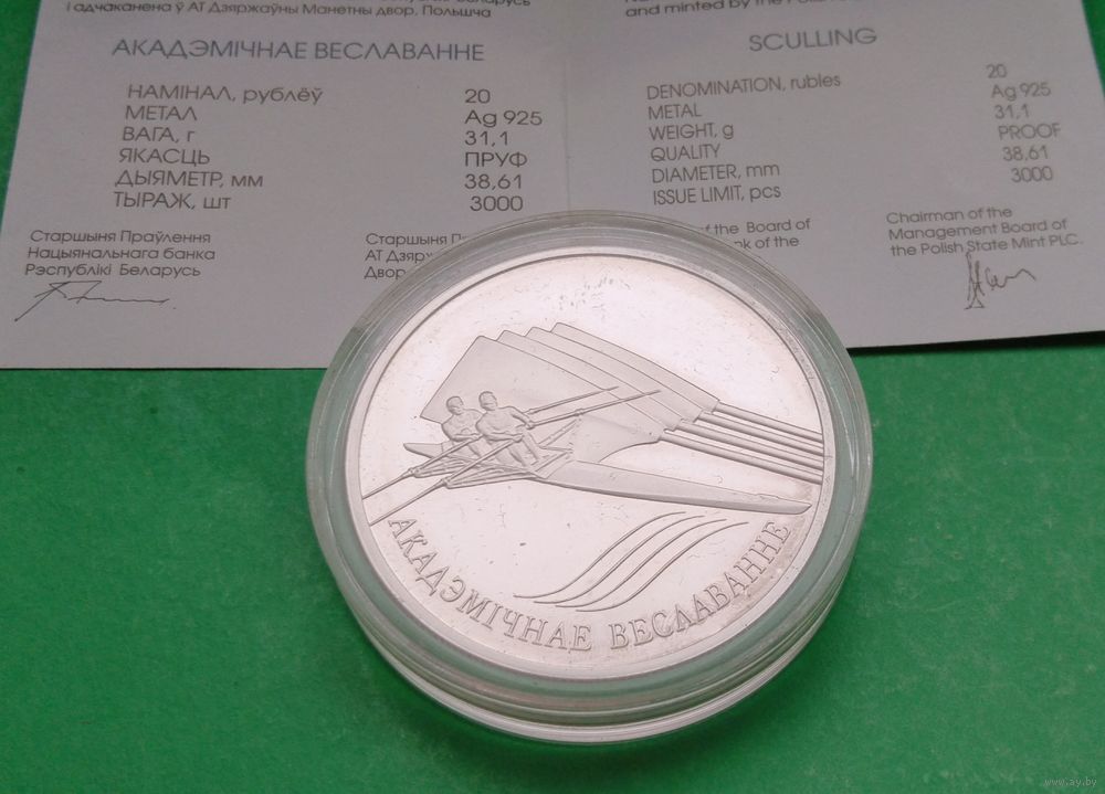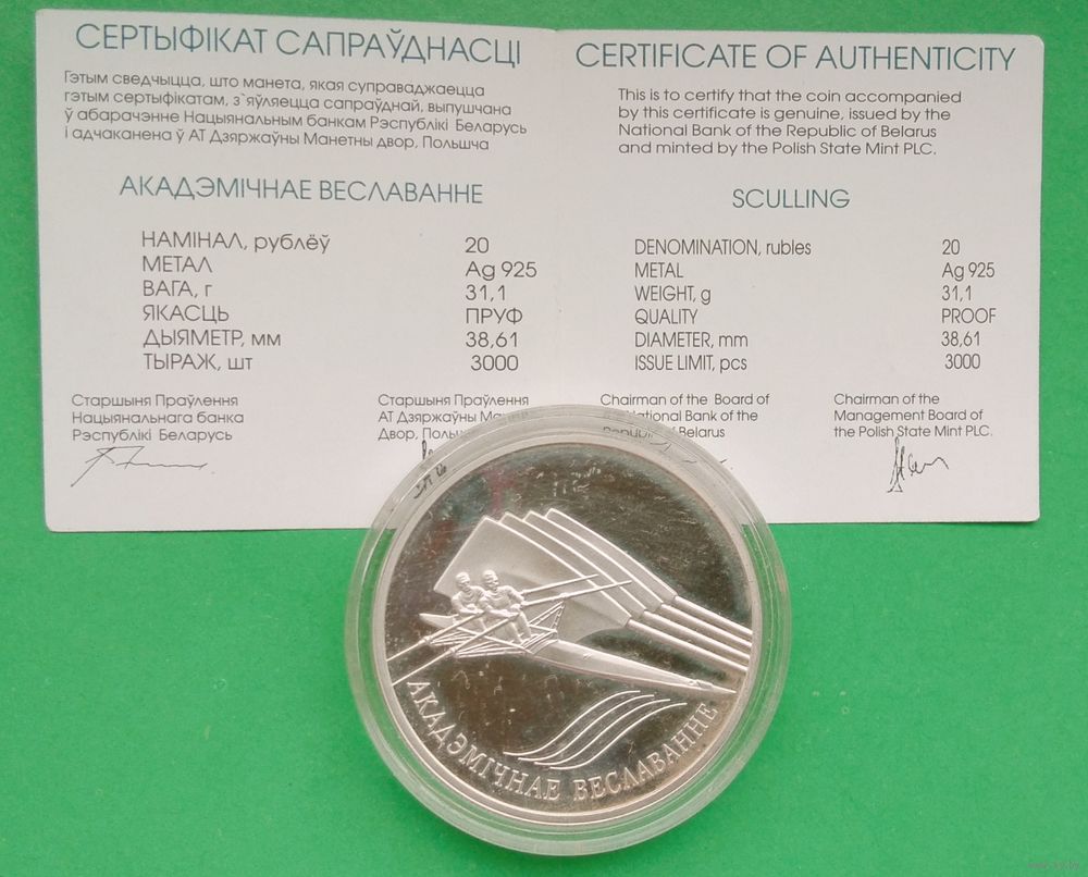 ОБМЕН. Академическая гребля. 20 рублей 2004 год. Сертификат.