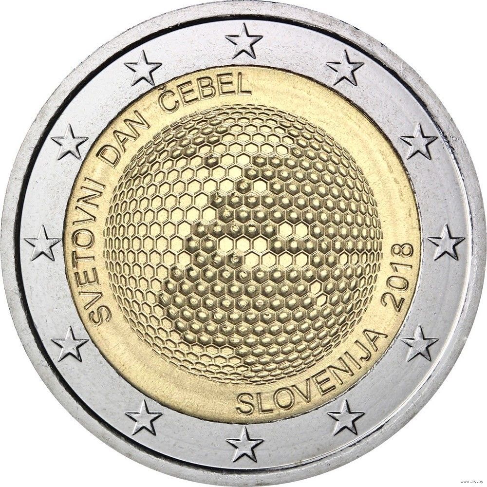 (ОБМЕН ПРИВЕТСТВУЕТСЯ) 2 евро Словения 2018, Всемирный день пчел, UNC из ролла