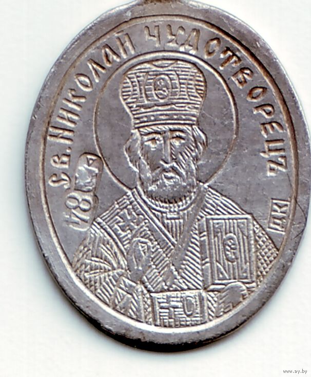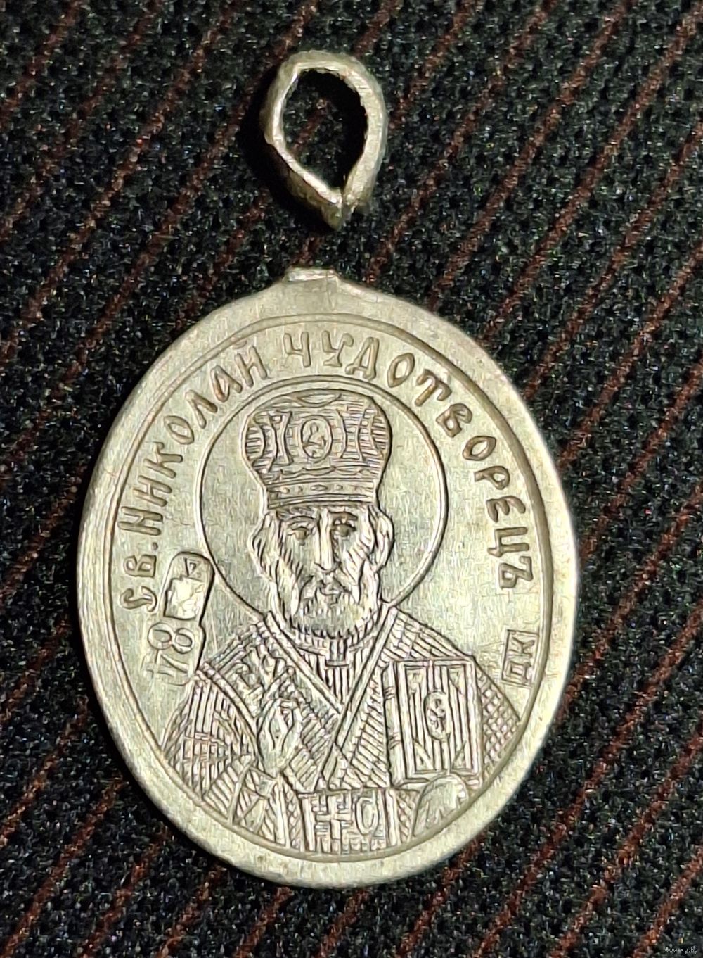 Иконка- образок Св. Николай Чудотворец, серебро 84 проба. Клеймо ДК, Дмитрий Лазаревич Кучкин- известный фабрикант серебряных изделий и наград. Размер без ушка- 1,5-1,1 см. Ушко обломано, в наличии.