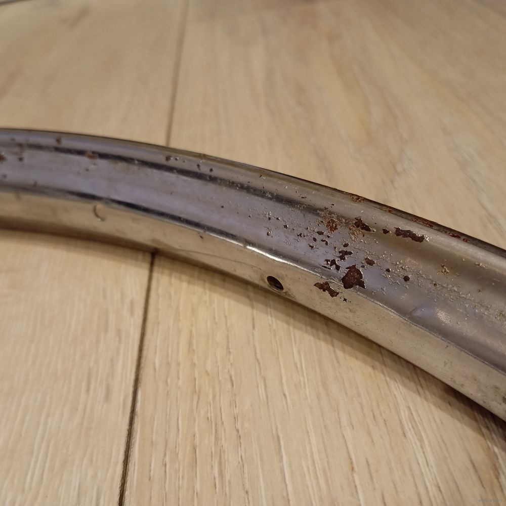 Обод переднего колеса для взрослого советского велосипеда типа ММВЗ Минск Аист (СССР). 28 дюймов. Хромированный, состояние хорошее, имеются очаги ржавчины.