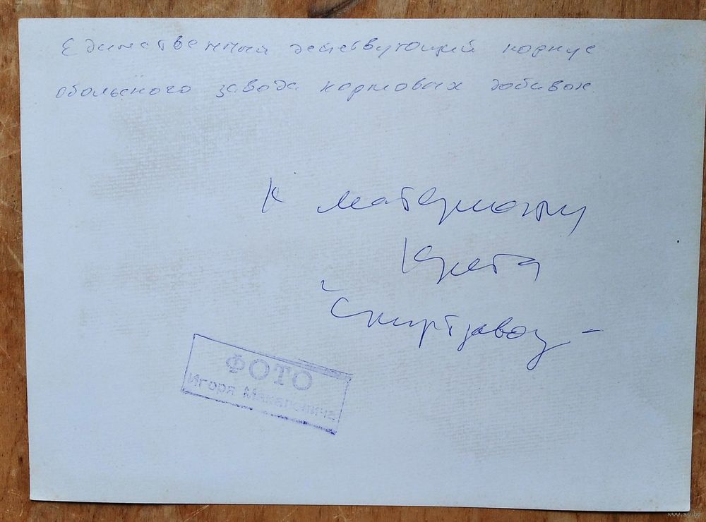 Оболь. Два фото на заводе кормовых добавок. 16х22.5 см. Цена за оба.