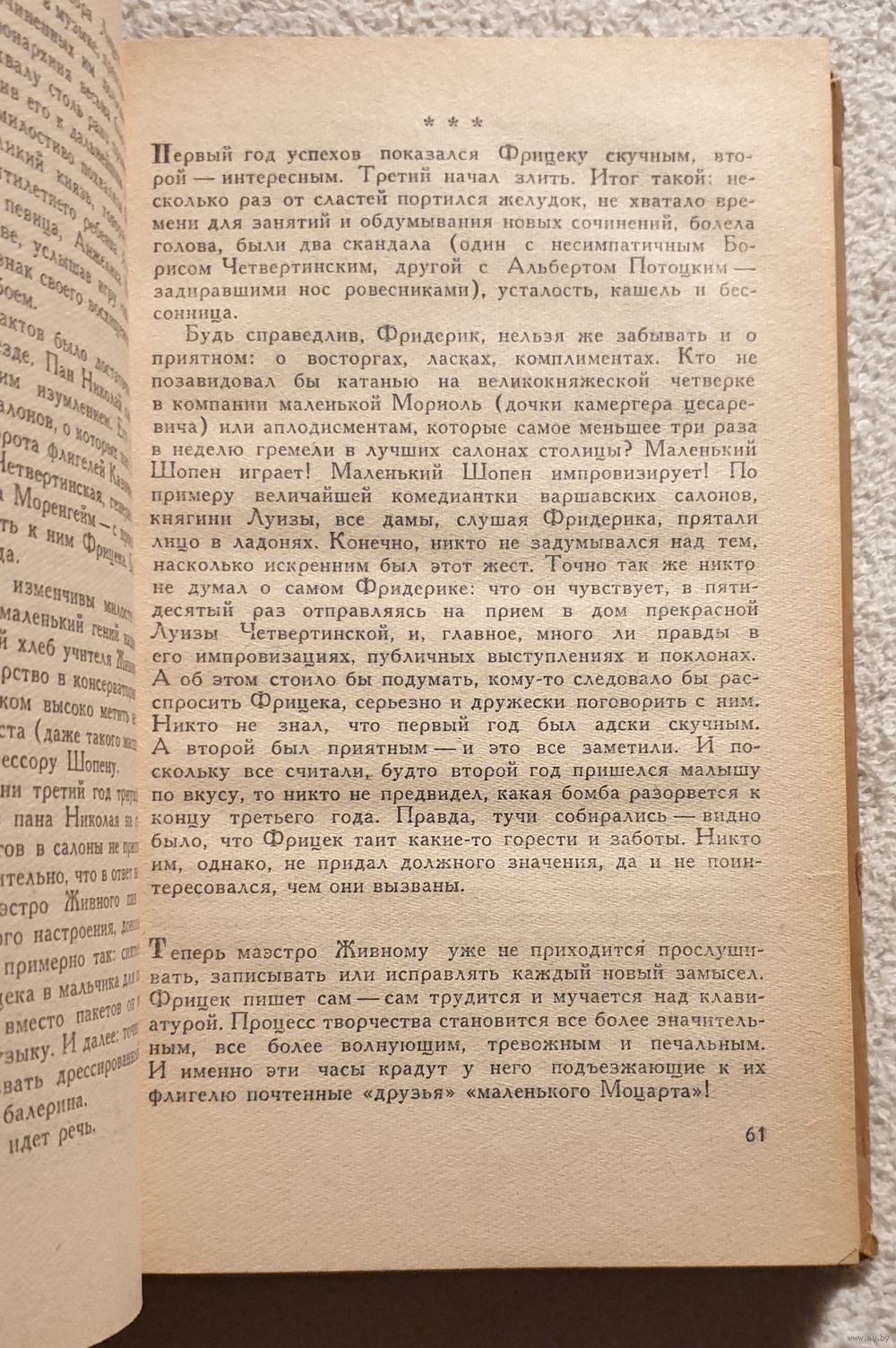 Повесть Ежи Брошкевича (1922 - 1993) о великом польском композиторе Шопене рисует перед нами цельный и обаятельный образ композитора, его горячую любовь к родине, гуманизм, его кристальную чистоту как человека и гражданина. Он воздает должное творчеству Шопена, искренне восхищается им, но в то же время строго и взыскательно относится к его ошибкам и заблуждениям.