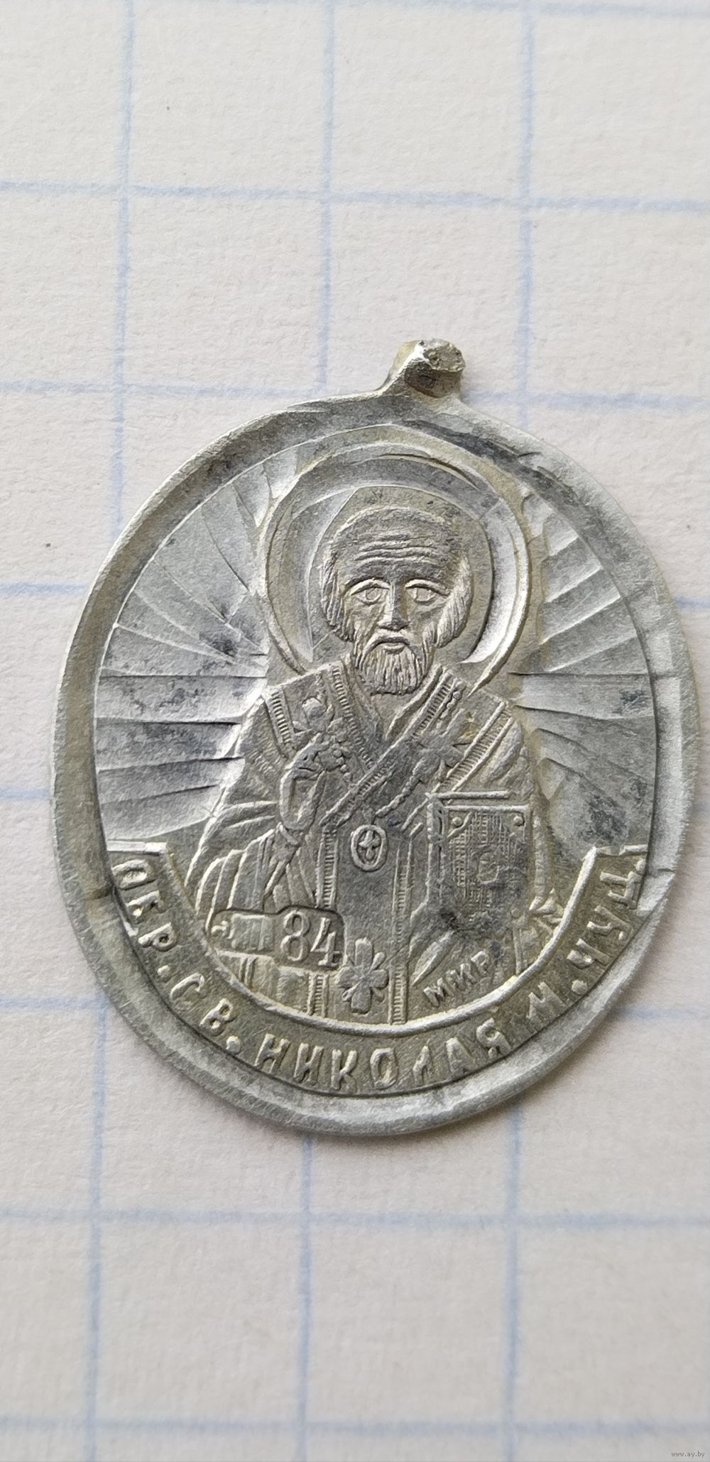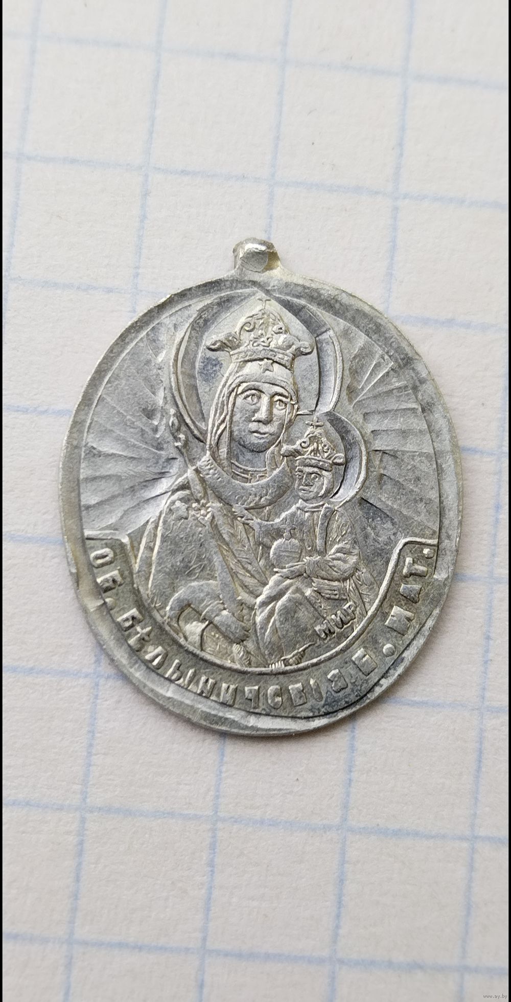 Белыничская Божья Матерь, Святой Николай. Серебро 84 проба. Размер 1,8×1,5см.