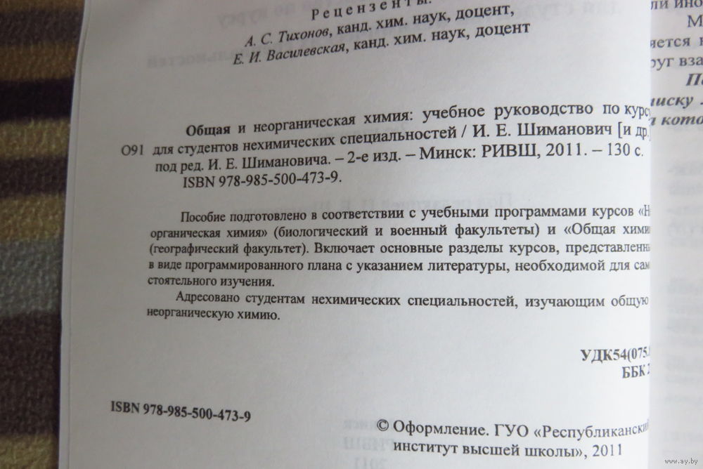 Общая и неорганическая химия: учебное руководство по курсу для студентов нехимических специальностей. Под ред. И.Е. Шимановича. -- Минск: РИВШ, 2011.