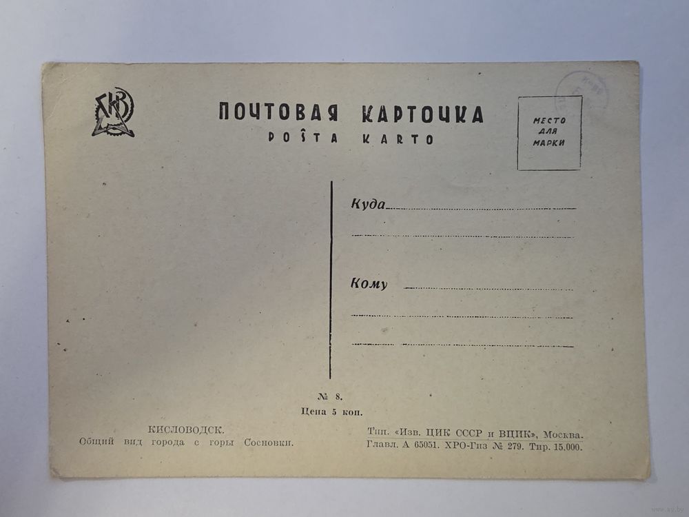 Общий вид города с горы Сосновки. Кисловодск. Чистая. Почтовая карточка 1920е - 1930е годы.