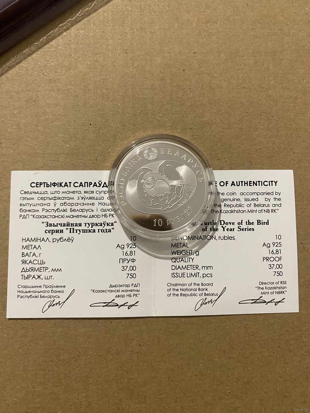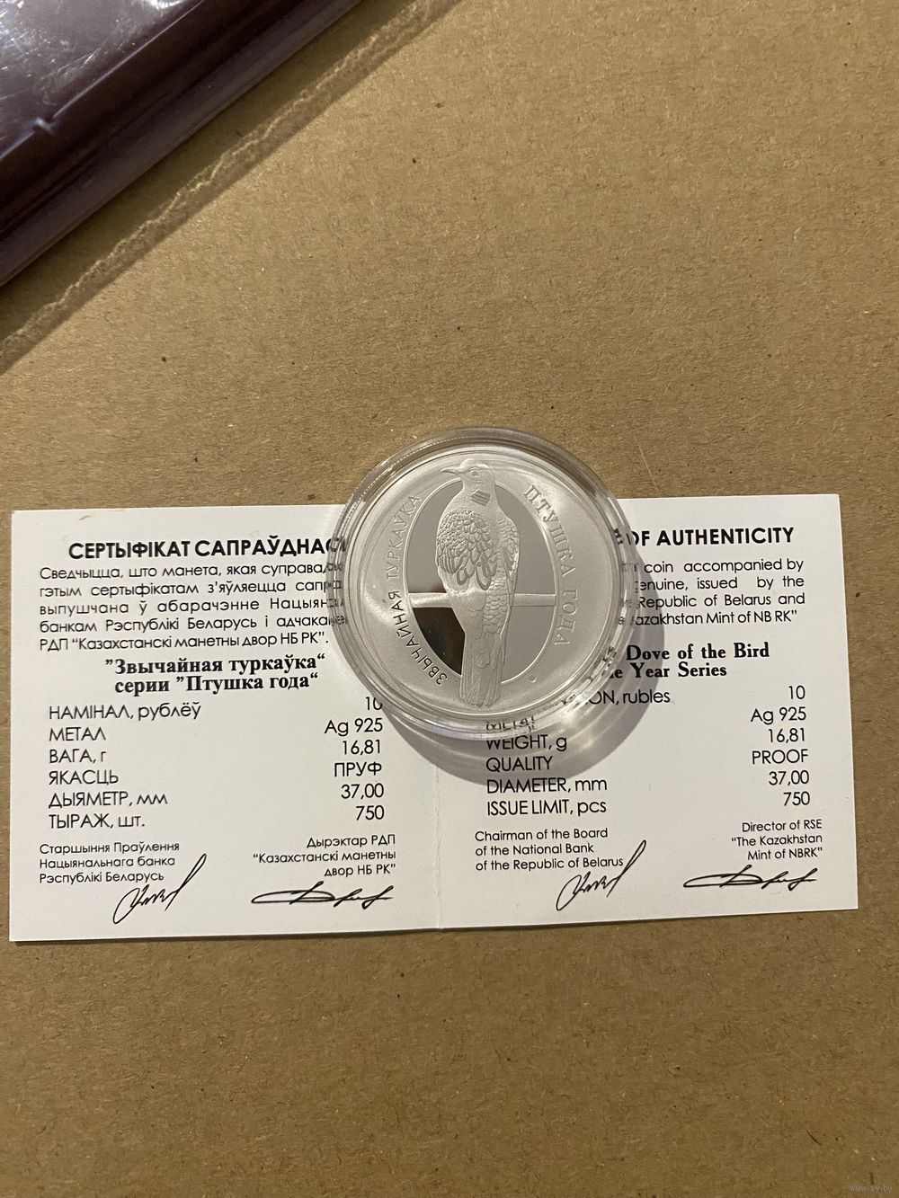 Обыкновенная горлица. 10 рублей. Тираж 750 штук.