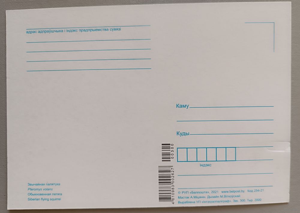 Обыкновенная летяга. Грызуны. Открытка