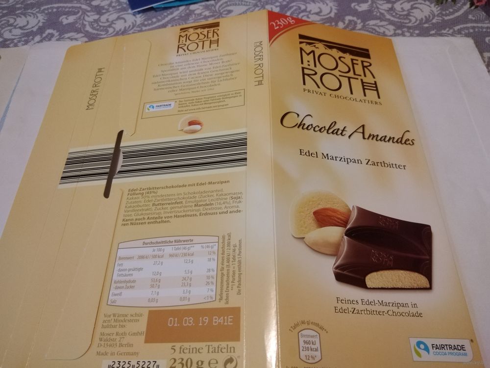 Обёртка от шоколада. Картон.