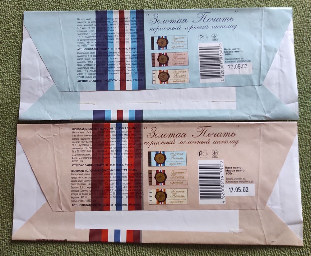 Обёртки от шоколада ,,Золотая Печать,,(2 шт.)
