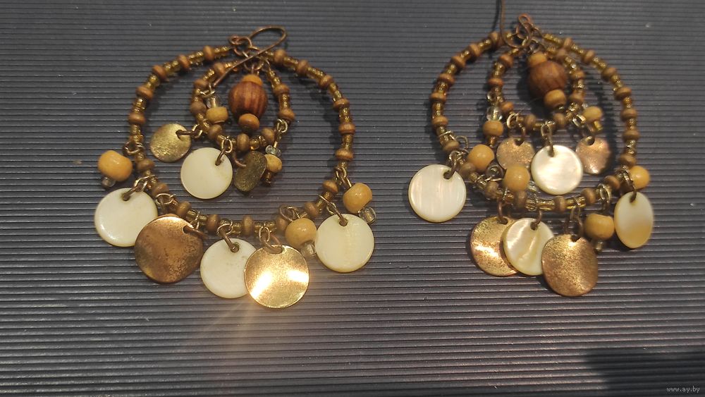 Фото 2. Красивые серьги цвет коричневый с висюльками. Диаметр 4,5 см. Отличное состояние. Цена 15,00