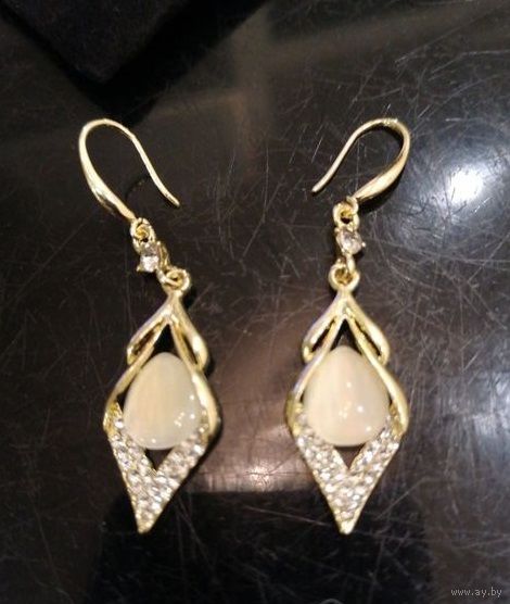Очень красивые серьги в бархатном мешочке, отличный вариант подарка по любому поводу, вся длина 5см, ширина 1,4см.