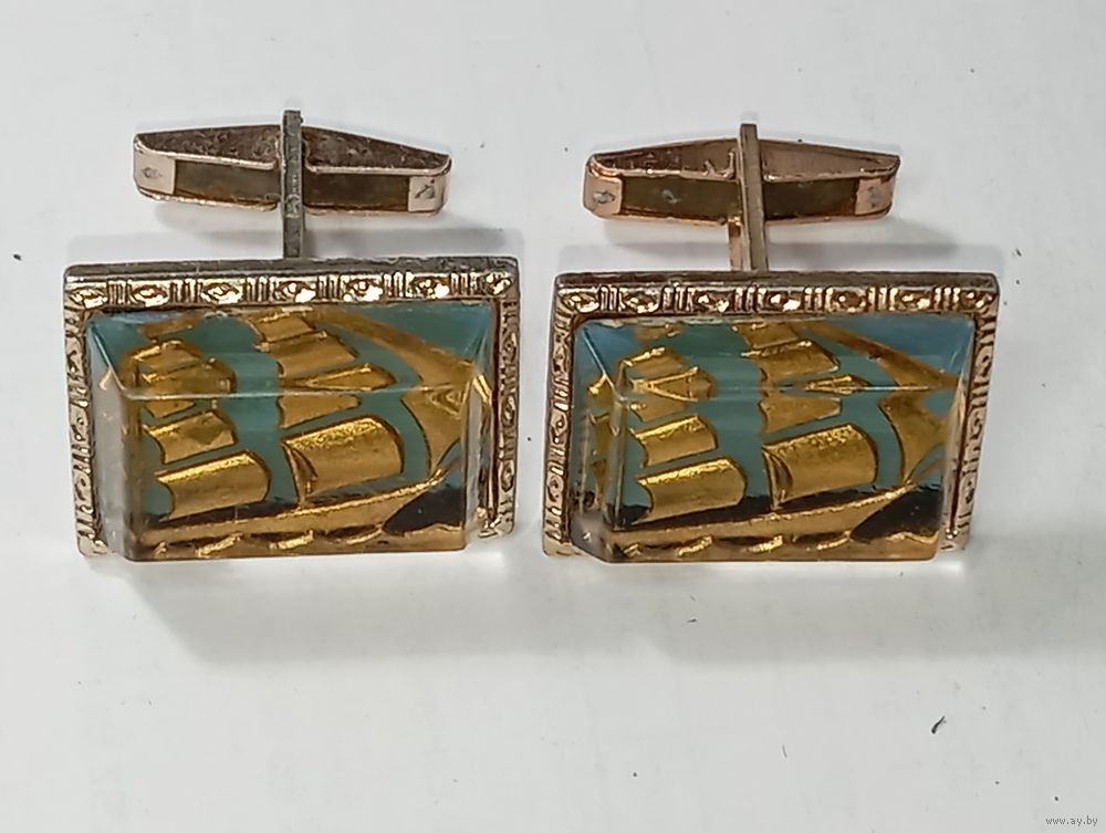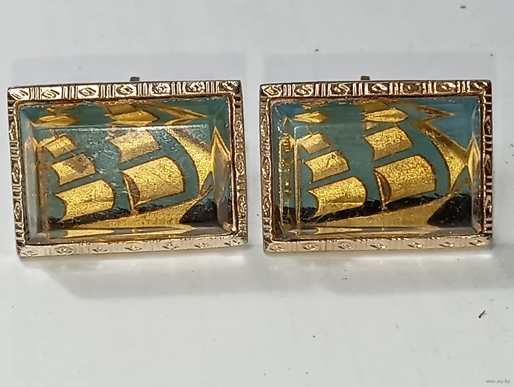 Очень красивые запонки с Парусником . Клеймо ( МЕТ ) присутствует .
