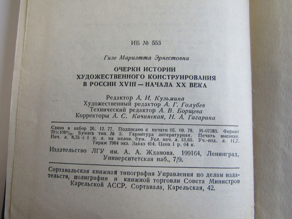 "Очерки истории художественного конструирования в России XVIII - начала XX". М.Э. Гизе. Книга. СССР 1978 г.и..