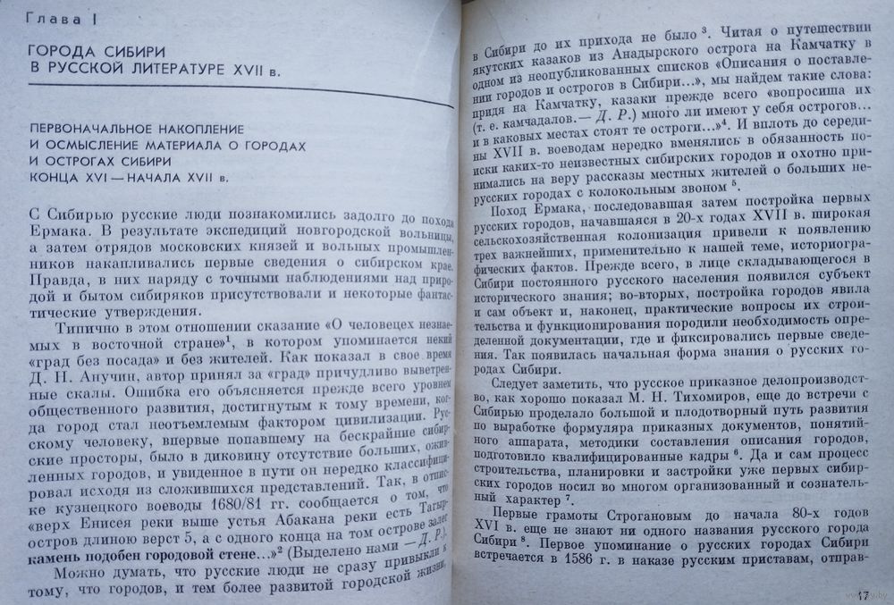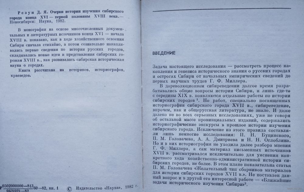 Тираж 1550 экз. 224 стр. В монографии на основе многочисленных документальных и литературных источников конца XVI - начала XVIII в. показано, как в ходе хозяйственного освоения Сибири сначала стихийно, а потом сознательно накапливались первые сведения по истории русских городов, складывались новые идеи и представления сибирских горожан XVIII в., как развивалась сибирская историческая паука о городах.
