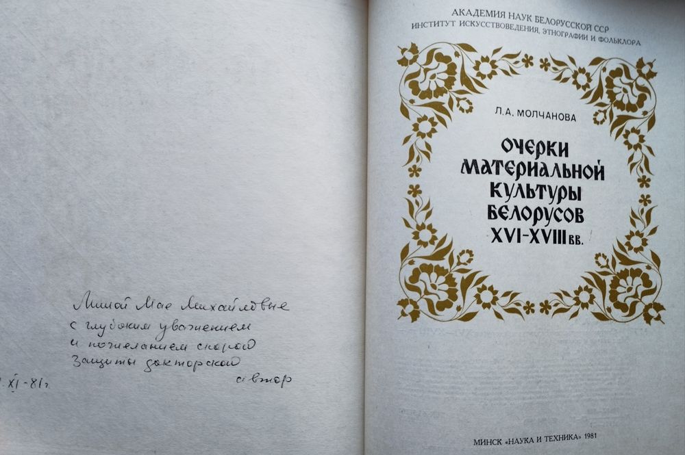 Большой энциклопедический формат. Тираж 1290 экз. 112 стр. Автограф Лидии Александровны Молчановой - этнографа, историка, доктора исторических наук (1969), автора исследований по истории и региональным особенностям материальной культуры белорусов.