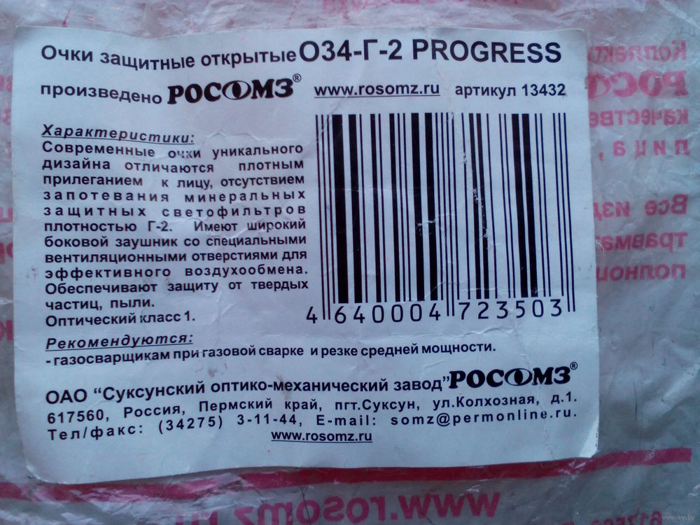 Очки для Газовой Сварки /Стёкла "Г-2"/ - Новые в Упаковке.