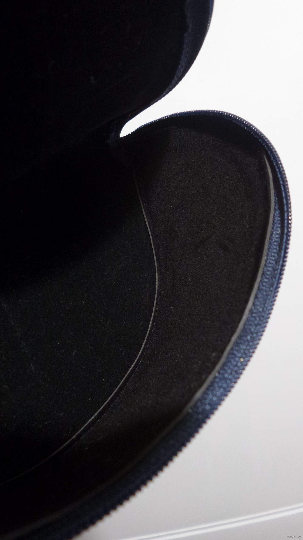 Очки идут в фирменном твердом футляре синего цвета с фирменным логотипом. Футляр на молнии. Внутри черная бархатистая поверхность.