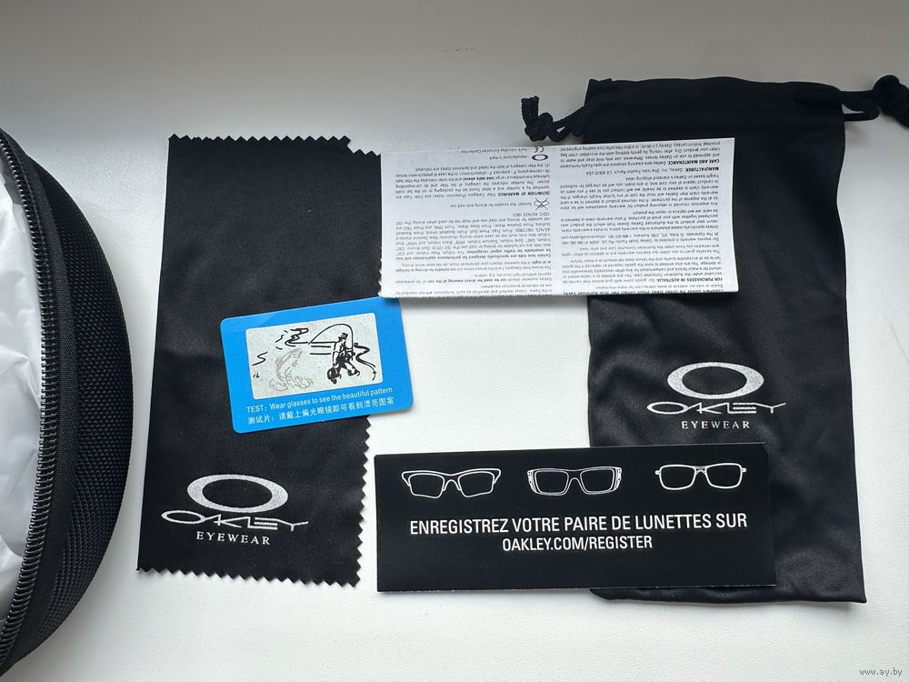 Здравствуйте. Очки спортивные из Китая - не оригинальные реплика имитация дизайна Оукли SUTRO PRIZM SNOW SAPPHIRE в комплекте три сменные линзы (черные, прозрачные, бирюзовые) + противоударный чехол, тряпочка для притирания.