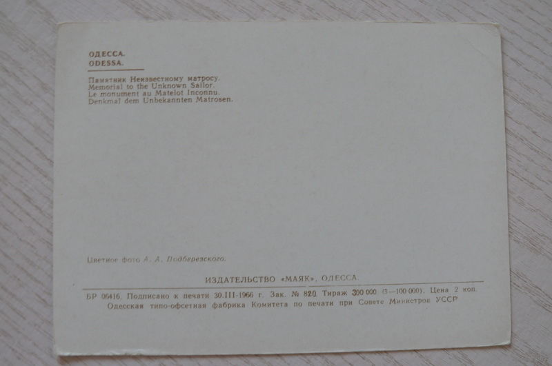 Одесса. Памятник неизвестному матросу; 1966, чистая.