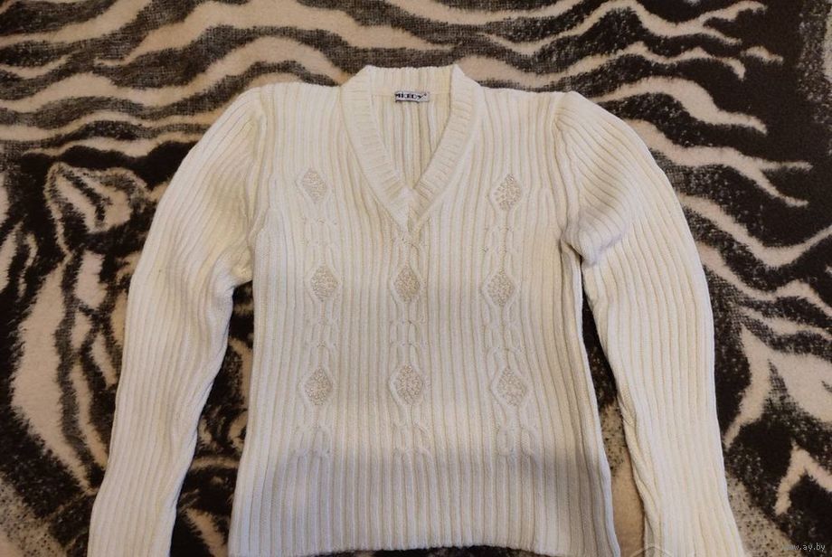 6. Кофта вязаная с отделкой бусинами. Цвет топленое молоко. Размер 44-46.