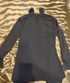 3-4. Блузка черная со сборочкой на груди. Высокий воротник, как в гольфе, застегивается на пуговички сзади. Спереди сделан разрез. По спинке и по бокам удлиненное. Легкая, падающая ткань. Полиэстер 100%.