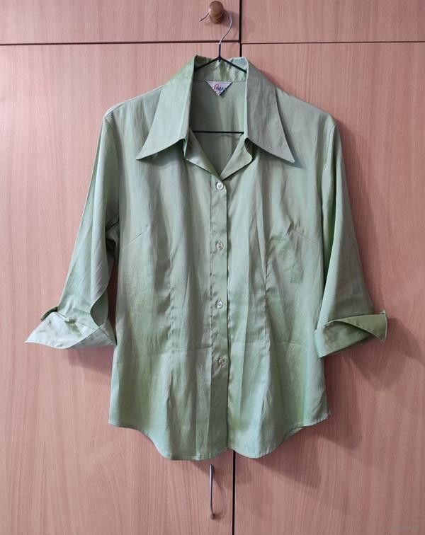 Фото 2. Блузка атласная зеленого цвета. Приталенная. Размер 44-46.