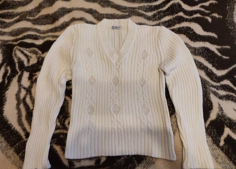 Фото 5. Кофта вязаная с отделкой бусинами. Цвет топленое молоко. Размер 44-46.