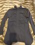 Фото 7. Блузка черная со сборочкой на груди, 44-46 размер. Высокий воротник, как в гольфе, застегивается на пуговички сзади. Спереди сделан разрез. По спинке и по бокам удлиненное. Легкая, падающая ткань. Полиэстер 100%.