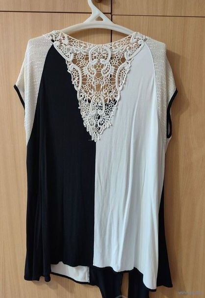 Фото 3-4. Блузка-майка с красивой вязкой на спине 56 размера.