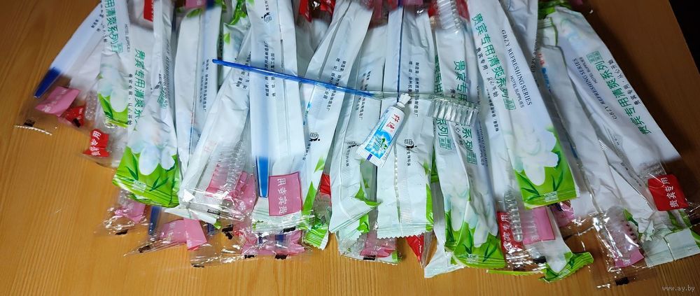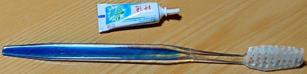 Одноразовый дорожный набор. Зубная щётка и зубная паста. По факту, в среднем, одного набора хватает на 3-4 раза использования. Щётка нормально выдерживает и объёма пасты достаточно