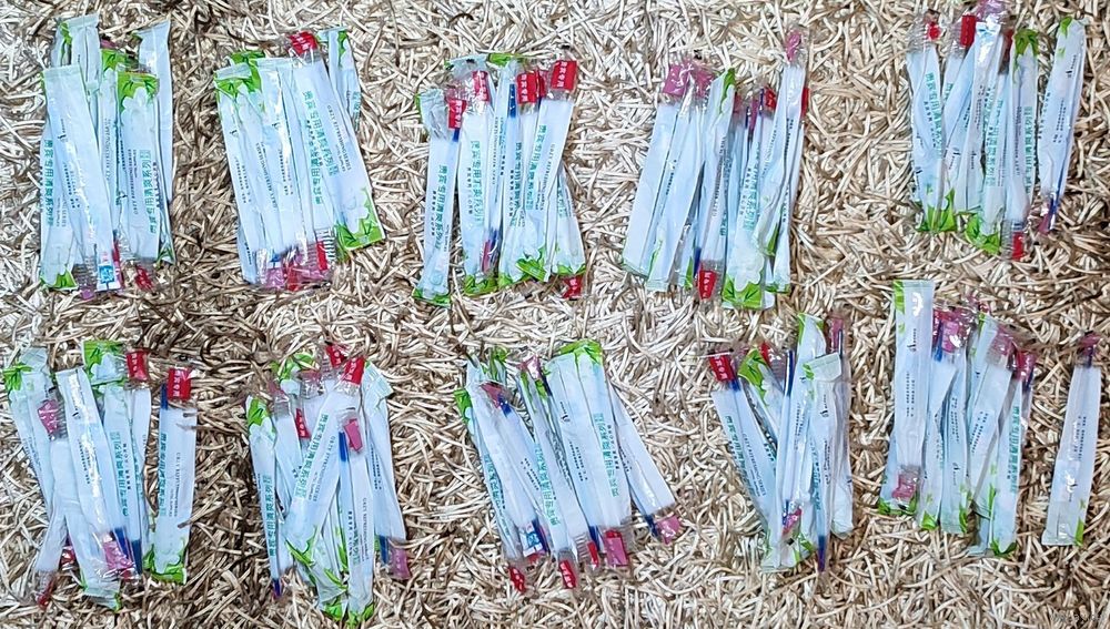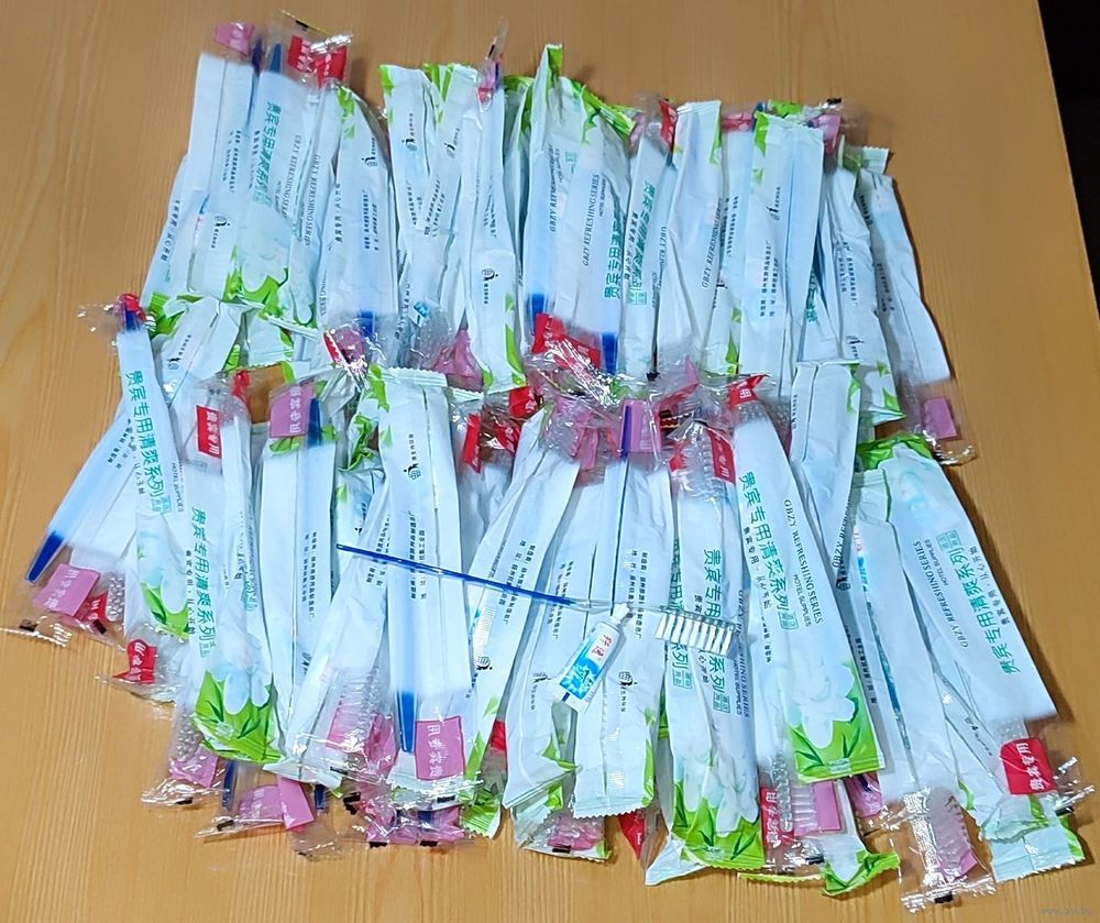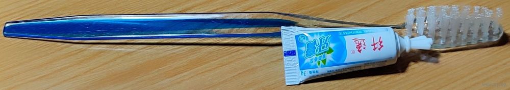 Одноразовый дорожный набор. Зубная щётка и зубная паста. По факту, в среднем, одного набора хватает на 3-4 раза использования. Щётка нормально выдерживает и объёма пасты достаточно