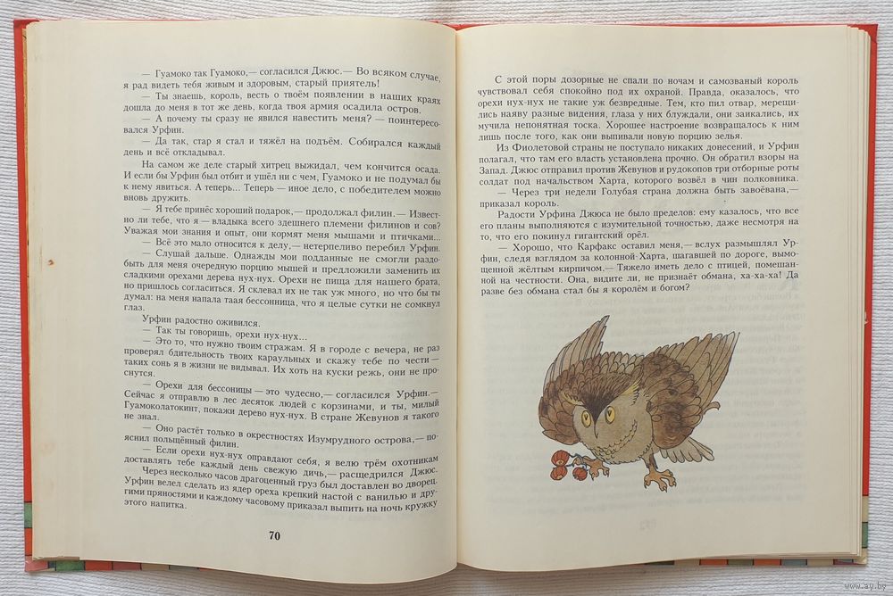 Иллюстратор Сустова Н. В. Повесть-сказка «Огненный бог Марранов» продолжает рассказ о событиях, происходящих в Волшебной стране. Хитроумный Урфин Джюс, назвав себя «огненным богом», решил стать правителем страны. Страшила, Железный Дровосек и гости из-за гор снова приходят на помощь её жителям.
