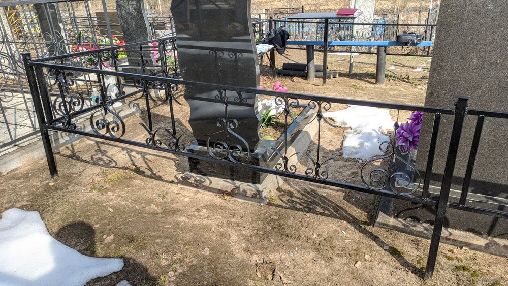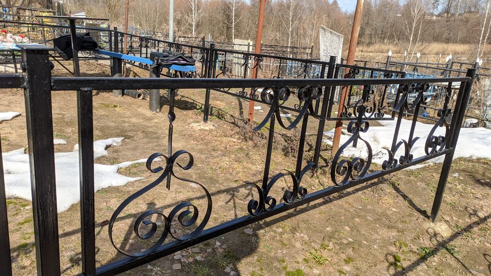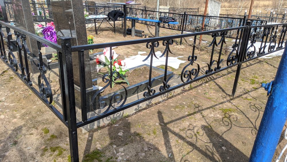 Размеры 4,6x4,0 метра (2 ряда по 3-4 могилы). Калитка (ширина 80 см) у края одной из длинных сторон. Разборная конструкция ограды (8 звеньев, по два звена на каждую сторону) позволяет безо всякой доработки собрать ограду других размеров: 4,6x2,0 метра (1 ряд на 3-4 могилы), 2,3x4,0 метра (2 ряда по 2 могилы), 2,3x2,0 метра (1 ряд на две могилы). При незначительной доработке возможно построение ограды непрямоугольной (ступенчатой) формы. Самовывоз. В настоящее время установлена. Демонтировать могу самостоятельно