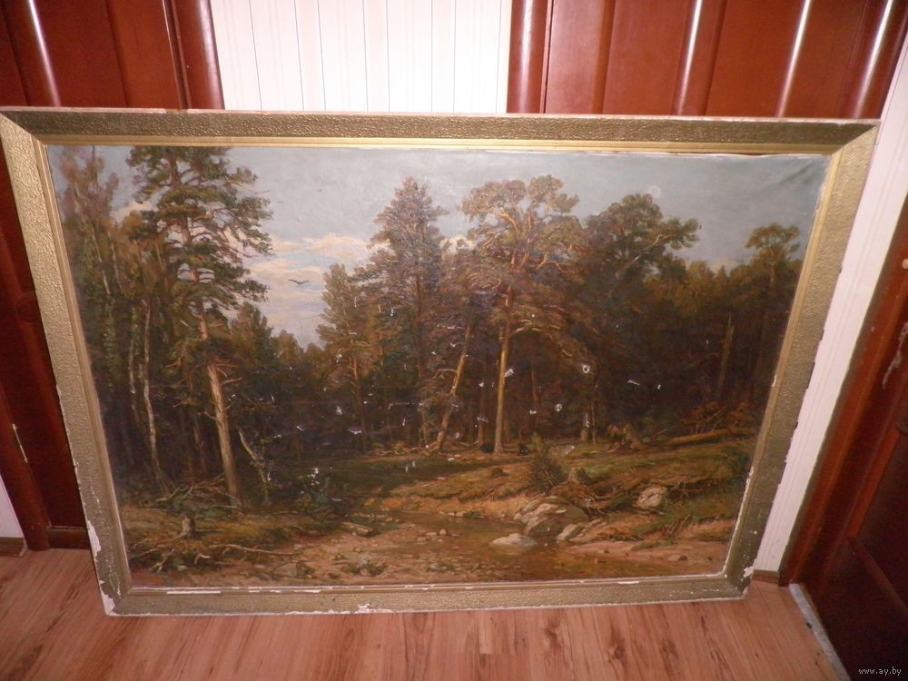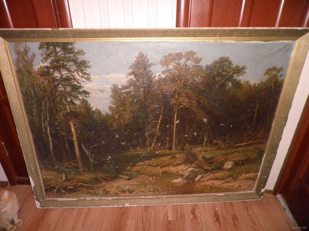 Состояние на фото,местами есть повреждения холста.Семён Абрамович Хуторской много писал повторов и копий работ известных художников Соцреализма Левитана,Шишкина и др.